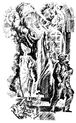 перевязи. Внезапно видение оживает, слышна короткая, прерываемая стрельбой