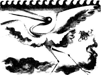 Смешинка, Каппа и Капелька сели на широкую спину старого аиста, и он