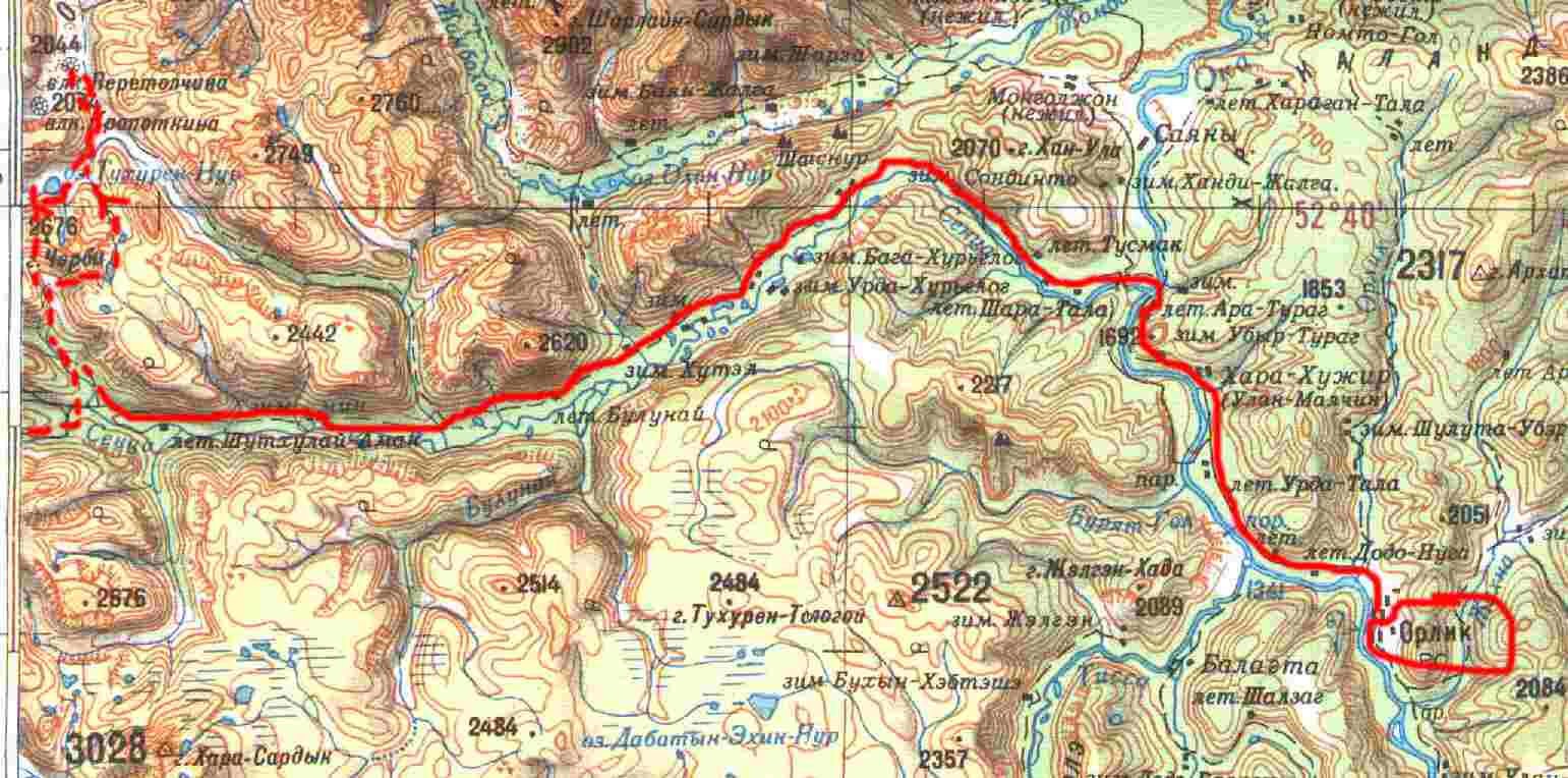 (Орлик) - Хойто-гол - Белин-Бажен - Белин - Кызыл-Хем -