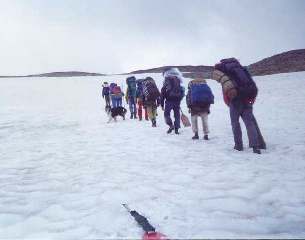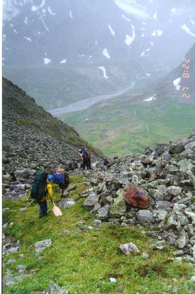 краю снежника. В отчете они отсоветовали так идти (тяжело на осыпи и камнях с