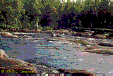 Порог No3 (Iа, 50 м). Слив между камней, мелкий заход. Сходу. Через порог перекинут авт. мост. Через 100 м --
