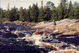 Порог No40 (Iб, 150 м). У двух островов. Средней мощности. Сходу. Через 15 мин (три небольших переката) --