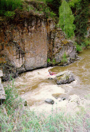 река упирается в крутяк и уходит резко направо. На "Замке"