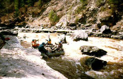 спокойно. С правого берега удобнее смотреть порог и страховать,